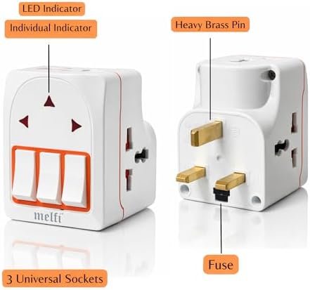 Melfi UK Type-G 13A Universal 3-Pin Multi Plug Socket with Individual Switch – Flat Pin Power Adapter Converter with Surge Protection for UK, Hong Kong, London & Ireland Buy Online at Best Price in UAE – Amazon.ae
