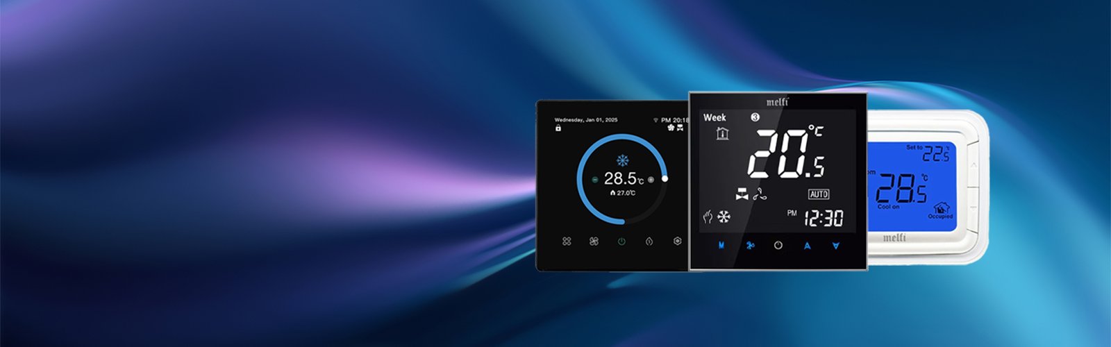 Melfiâ„¢ Wifi Programmable Room AC Smart Thermostat MATRIX | Energy Saving FCU Central Air Conditioner Touch Controller 95-240VAC with Alexa Echo Google Home IFTTT | 3 Speed Fan with Auto & Child Lock