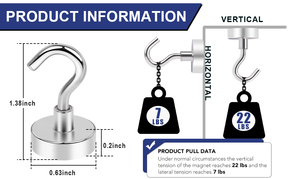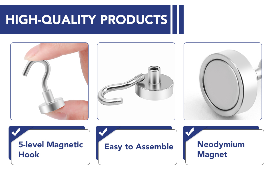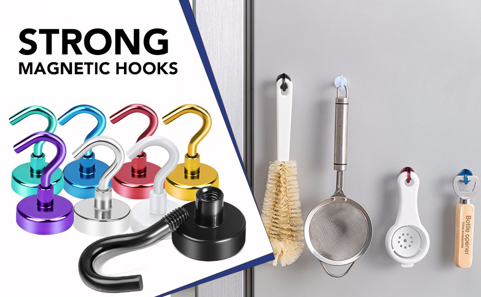 This strong magnetic hook is made of high quality material, it is permanently stressed, has a long service life and is not easy to break. And they are polished and nickel-plated, the surface will not change color.