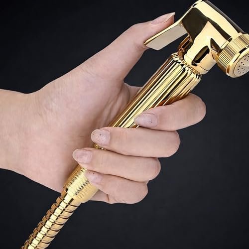 Premium Gold Brass Bidet Handheld Shattaf Set – Luxury Wall-Mounted Hand Shower Sprayer with Flexible Hose & Holder for Modern Bathrooms – Polished Gold Finish